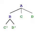 For example, the context free rule , shows that the node labelled A (mother node) immediately dominates nodes labelled B, C, and D, (daughter nodes) and nodes labelled B, C, and D can be immediately dominated by a node labelled A.