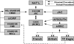 The collection coordination intelligence requirements management (CCIRM) system is the NATO doctrine for intelligence collection management, although it differs from U.S. doctrine.[11] From the U.S. perspective, CCIRM manages requests for information (RFI), rather than the collection itself, which has caused some friction when working with U.S. collection assets. Within NATO, requests for information flowed through the chain of command to the CCIRM manager. Where the U.S. sees collection management as a "push" or proactive process, NATO sees this as "pull" or reactive.