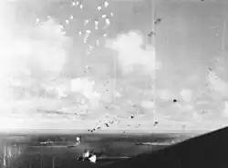 The ship left Kure on 17 January 1943 and sailed for Truk with a load of aircraft. Upon arrival she was assigned to the Second Carrier Division with the carriers Jun'yō and Zuikaku to provide cover for the evacuation of Guadalcanal. Zuihō's fighters were transferred to Wewak, New Guinea, in mid-February and then to Kavieng in early March, although the ship remained at Truk. They flew to Rabaul on mid-March to participate in Operation I-Go, a land-based aerial offensive against Allied bases in the Solomon Islands and New Guinea. The fighters returned to Truk on 18 March after claiming 18 Allied aircraft shot down.[9] Zuihō arrived at Sasebo on 9 May and received a brief refit in mid-June. She returned to Truk on 15 July and remained in the area until 5 November when she returned to Yokosuka.[6] Her air group, 18 Zeros and 8 D3As, was briefly deployed to Kavieng in late August – early September before returning to Truk.[10] By this time, Zuihō was assigned to the First Carrier Division with Shōkaku and Zuikaku and they sailed for Eniwetok Atoll on 18 September for training; a secondary objective was to be in position to intercept any attacks by American carriers in the vicinity of Wake Island and the Marshall Islands area. That day the American carriers raided the Gilbert Islands and were gone by the time the Japanese reached Eniwetok on 20 September. Japanese intelligence reports pointed to another American attack in the Wake-Marshall Islands area in mid-October and Admiral Mineichi Koga sortied the Combined Fleet, including the First Carrier Division, on 17 October. They arrived at Eniwetok two days later and waited for reports of American activity until 23 October. They then sailed for Wake Island and then returned to Truk on 26 October without encountering any American ships.[11]