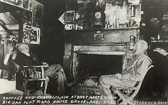 John Chaffee and Jason Chamberlain were gold miners in California who lived together for over 50 years. Referred to as the "wedded bachelors", they are a well-documented example in early American history of a male same-sex couple living in a relationship similar to marriage.[1] There is some evidence they were the inspiration for Bret Hart's gold rush era story Tennessee's Partner[2] and they are part of the local lore of Tuolumne county where they lived.[1][3]