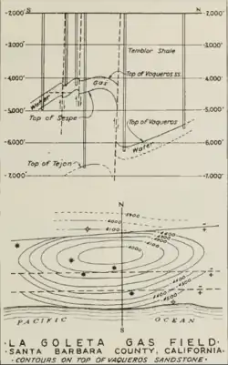 - ^ Swayze, R.O. (1943). La Goleta Gas Field, in Geologic Formations and economic development of the Oil and Gas Fields of California. San Francisco: State of California Dept. of Natural Resources Division of Mines, Bulletin 118. pp. 384–385.