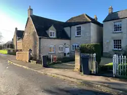 The building now known as Tannery House was built in 1770 for the surgeon James Clutterbuck and is situated at the corner of Church Road and Bath Road.[16] The nearby Brookside Cottage,[17] dating from the late 17th century, was originally more than one dwelling that formed part of Tannery Cottages. On the opposite side of the Bath Road, numbers 2 and 4 both date from the early 17th century. On Church Road, the houses now known as Church View and Stoneleigh previously formed the Cross Keys Inn, first mentioned in 1707. The Inn was a meeting place for both the local Clothworkers Society [15] and the church clergy who assembled there before a service at the church.[16] The brick outline of the archway to the inn is still visible. At the other end of the row of cottages is Ivy Cottage, an example of a clothiers cottage, dating from the late 16th or early 17th century. The only inn now remaining in the village is the White Hart which was first mentioned in 1740. Adjoining it and to the right is the old Parsonage today known as Rhymney Cottage.