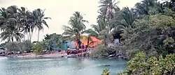 Majuro Atoll consists of over 60 islands, three of which are larger than 0.5 km2 (0.2 sq mi).[3] At the western end of the atoll, about 50 kilometers (30 mi) from Delap-Uliga-Djarrit (DUD) by road, is the island community of Laura, an expanding residential area with a popular beach.[4] Laura has the highest elevation point on the atoll, estimated at less than 3 meters (10 feet) above sea level.[5] Djarrit is mostly residential.[6]