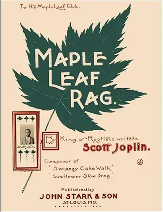 The "Maple Leaf Rag" is associated with the city of Sedalia, Missouri, although there is no record of Joplin having a permanent residence there before 1904. Joplin arrived in Sedalia in 1894 as a touring musician and stayed with the family of Arthur Marshall, who later became one of Joplin's students and a ragtime composer in his own right.[3] Joplin played as a solo musician at dances and at the major black clubs in Sedalia, among them the "Maple Leaf Club". It is possible that the rag was named after the Maple Leaf Club, although there is no direct evidence to prove the link, and there were probably many other possible sources for the name in and around Sedalia at the time.[4]