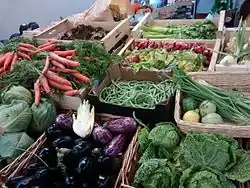 The name in English translates as "Market of the Red Children", and refers to the nearby "Hospice des Enfants-Rouges" where orphans were clothed in red (the color of charity).[2] The market offers fresh fruits, vegetables, flowers and bread, as well as restaurants where shoppers can buy cooked meals.[3]
