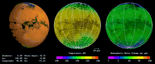This Mars climate model is a complex 3-dimensional (height, latitude, longitude) model, which represents the processes of atmospheric heating by gases and ground-air heat transfer, as well as large-scale atmospheric motions.[1] The model also uses geophysical boundaries which are taken from spacecraft observation. These boundaries can include Martian topography, albedo, or thermal inertia.[2] By solving the dynamics and physics of the model an overall understanding of the planets processes can be estimated.[3]