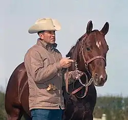 • 1978 AQHA World Champion Senior Cutting Horse riding Peponita