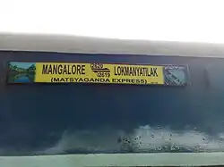 The Matsyagandha Express was named by Mr. Ramchandra Sawalekar, a gazetted officer in the Indian Navy. Matsyagandha literally means "Fragnance of Fish" - the appellation was given since this train runs along the fishing coast of Western India adjoining the Arabian Sea–Konkan Railway route. The name is based on a character from the epic Mahabharata, Satyavati who was dubbed the moniker of Matsyagandha due to the fragrance of fish that emanated from her. Matsyagandha is also a famous Marathi musical play written by Vasant Kanetkar.[4] The train has become important link and emotional chord for natives of Dakshina Kannada, Udupi and Uttara Kannada districts living in Mumbai and surrounding cities.
