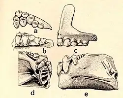 Megapiranha is an extinct serrasalmid characin fish from the Late Miocene (8–10 million years ago) Ituzaingó Formation of Argentina, described in 2009.[1] The type species is M. paranensis.[2] It is thought to have been about 71 centimetres (28 in) in length and 10 kilograms (22 lb) in weight.[3] The holotype consists only of premaxillae and a zigzag tooth row; the rest of its body is unknown.[4] This dentition is reminiscent of both the double-row seen in pacus, and the single row seen in the teeth of modern piranhas, suggesting that M. paranensis is a transitional form. Its bite force is estimated between 1,240–4,749 N (279–1,068 lbf).[3]
