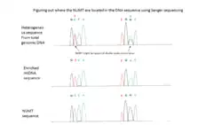 The worst cases of NUMT insertion happen when mtDNA is inserted into the regulatory region or nuclear structural genes and disrupts or alters vital cell processes.[1][33] For instance, in primary low-grade brain neoplasms, fluorescent in situ hybridization analysis helped with recognizing mtDNA localized in the nucleus in correlation with an overall increase in mtDNA in the cell.[42] In hepatoma cells mtDNA sequences are present in the nuclear genome at a higher copy number than normal tissue.[20][33] Another example would be HeLa nDNA that contains sequences which hybridize with mtDNA fragments of approximately 5 kb. An analysis showed that nDNA of malignant cells contains sequences of the mitochondrial cytochrome oxidase I, ND4 , ND4L , and 12S rRNA genes.[20] Based on these findings, mtDNA fragments were assumed to act as a mobile genetic element in the initiation of carcinogenesis.[1] Southern blotting is used to determine the frequency of mitochondrial insertion in nDNA of normal and tumor cells of mice and rats, which supported mtDNA sequences being more numerous and abundant in nDNA of rodent tumor cells in comparison with normal cells.[1] Using FISH probes; PCR; and data sequencing, mapping, and comparison, Ju found that the mitochondrial–nuclear genome fusions occur at a similar rate per base pair of DNA as interchromosomal nuclear rearrangements, indicating the presence of a high frequency of contact between mitochondrial and nuclear DNA in some somatic cells. He also investigated the timing of somatic mtDNA integration into the nuclear genome by assessing cases in which a metastatic sample had been sequenced in addition to the primary tumor. In some cases, mtDNA transference into the nucleus in somatic cells is very frequent and can occur after neoplastic formation and during the course of subclonal evolution of cancer, suggesting the event occurs in the common ancestral cancer clones or in normal somatic cells prior to the neoplastic change.[20] These findings demonstrated that the presence of direct correlation between NUMTs and cancer in different organs.[16]