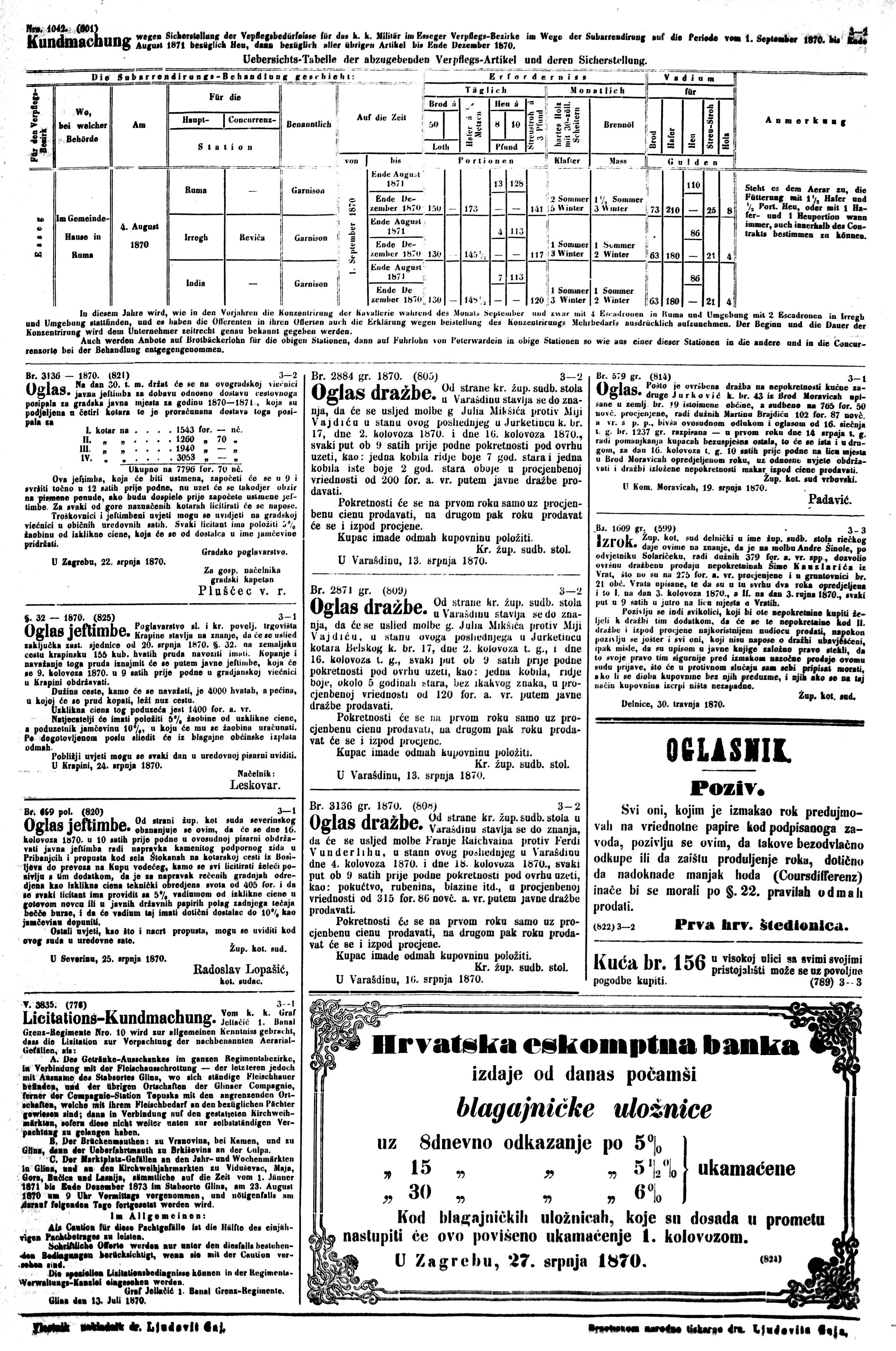 - ^ Lopašić, Radoslav (1870-07-28). "Oglas jeftimbe". Narodne novine (in Croatian). p. 4. ISSN 0027-7932.