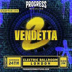 The Chapter 174: Vendetta 2 was a professional wrestling event produced by Progress Wrestling. It took place on 24 November 2024, in London, England, at the Electric Ballroom.[2]
