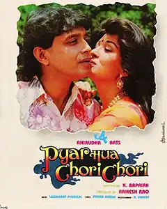 Pyar Hua Chori Chori is a 1991 Indian Hindi-language romantic comedy film directed by K. Bapayya, starring Mithun Chakraborty, Gautami, Shikha Swaroop, Shafi Inamdar, Shakti Kapoor and Anupam Kher.[1] This was Gautami's debut film in Hindi. It is a remake of the Malayalam film Chithram (1988). The film was a Superhit at the box office, proving Mithun Chakraborty's acting versatility.[2]