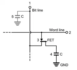 Dynamic random-access memory (DRAM) allowed replacement of a 4 or 6-transistor latch circuit by a single transistor for each memory bit, greatly increasing memory density at the cost of volatility. Data was stored in the tiny capacitance of each transistor and had to be periodically refreshed every few milliseconds before the charge could leak away.