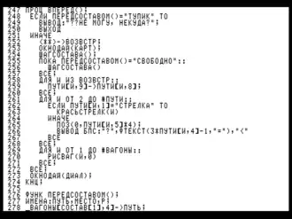 Rapira (Russian: Рапира, rapier) is an educational procedural programming language developed in the Soviet Union and implemented on the Agat computer, PDP-11 clones (Electronika, DVK, BK series), and Intel 8080 and Zilog Z80 clones (Korvet). It is interpreted with a dynamic type system and high level constructions. The language originally had a Russian-based set of reserved words (keywords), but English and Romanian were added later. It was considered more elegant and easier to use than Pascal implementations of the time.