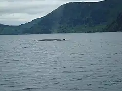 Sitka spruce is one of the dominant trees on Raspberry Island. Spruce forests are interrupted by fields of salmonberry bushes, alders and wildflowers. Higher elevations have wild blueberry and cranberry bushes with more grasses. Wildlife of note on the island includes Sitka deer, red foxes and Kodiak bears, as well as tufted puffins and bald eagles.[1] Afognak and Raspberry islands are the only locations in Alaska with elk populations.[2] The island's Roosevelt Elk developed from eight calves translocated from Washington state's Olympic Peninsula in 1928.[3] The elk have adapted well to the island, with some mature bulls weighing nearly 1,300 pounds (590 kg).[4] The muskrat is another species that was successfully introduced to the island.[2] Whales commonly meander down Raspberry Strait but must turn around because it becomes too shallow for them to pass all the way through. Kayakers take advantage of this phenomenon to wait for them to pass by again on their way back out to deeper water. Bald eagles are abundant.
