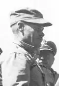 The 1st Marines next battle was its bloodiest yet – the Battle of Peleliu. The regiment landed on September 15, 1944, as part of the 1st Marine Division's assault on the island. The division's commanding general, Major General William H. Rupertus had predicted the fighting would be, "...tough but short. It'll be over in three of four days – a fight like Tarawa. Rough but fast. Then we can go back to a rest area.".[11]During the Battle of Peleliu, the regiment was decimated by heavy artillery and accurate small arms fire in the vicinity of Bloody Nose Ridge. Repeated frontal assaults with fixed bayonets failed to unseat the Japanese defenders from the 14th Division (Imperial Japanese Army).[12] The 1st Marines fought on Peleliu for 10 days before being pulled off the lines after suffering 58% casualties and no longer being combat effective.[13] Ten days of fighting on Peleliu cost the 1st Marine Regiment 1,749 casualties.[14]