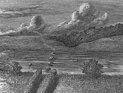 It is recorded that stilts were sometimes used to cross the river, for example Thomas Raeburn of Holmhead near Hurlford worked as a gardener at Shawhill House and regularly crossed the River Irvine using stilts. At nearby Barleith, Mayday festivities sometimes included stilt races across and back, resulting in much amusement as many competitors fell into the water.[47] Rivers form physical boundaries and are only crossed with either trouble or expense. At the port of Irvine itself ferry boats took passengers across to Ardeer, further upstream fords and /or stepping stones were present in many places. These were often treacherous and could turn from tranquil to lethal in a matter of minutes, often with no warning as the rainfall could well have fallen far upstream or at the moors that form the watershed.