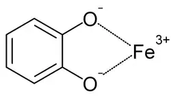 Siderophores are iron chelators, allowing organisms to acquire iron from their environment. In the case of pathogens, iron can be acquired from the host organism.[20] Siderophores and ferric iron can associate to form stable complexes.[10][21][22] Siderophores bind iron using a variety of ligands, most commonly as α-hydroxycarboxylates (e.g. citrate), catecholates, and hydroxamates.[5][10][23] [24] As a defence mechanism, siderocalin can substitute ferric bis-catechol complexes (formed under physiological conditions) with a third catechol, in order to achieve a hexacoordinate ferric complex, resulting in higher affinity binding.[5][18][25]