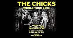 2. ^ a b c Irvin, Jack (February 14, 2023). "The Chicks Announce 2023 Summer World Tour with Maren Morris and More Guests: 'See You Soon'". People. Retrieved February 14, 2023.
