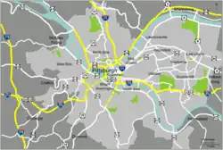 I-579, or the "Crosstown Boulevard," is a spur off of I-279 that alleviates downtown and North Shore traffic headed north or south and to events at either the convention center or the PPG Paints Arena.