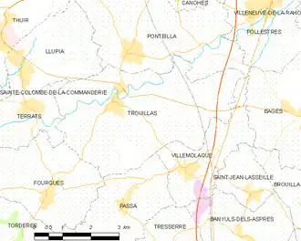 Trouillas is located in the canton of Les Aspres and in the arrondissement of Perpignan.