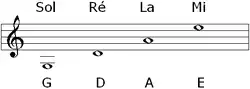 The tuning G-D-A-E is used for the great majority of all violin music. However, any number of other tunings are occasionally employed (for example, tuning the G string up to A), both in classical music, where the technique is known as scordatura, and in some folk styles where it is called "cross-tuning." Numerous such tunings exist, often being named for a prominent tune played in that tuning. A good example of scordatura in classical solo violin repertoire is Paganini's First Violin Concerto in E-flat major, where the violin part is written in D-major and the violinist is supposed to tune a half tone higher to match the orchestra's key of E-flat major. Another notable example is the Danse Macabre, which requires the E string to be tuned down a semitone.