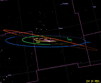 - ^ Of the 850,000 objects known to orbit the Sun at the time of the discovery, 756,000 (89%) were main-belt asteroids.[50]