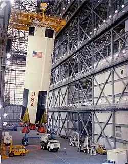 The Saturn V rocket used by Apollo 8 was designated AS-503, or the "03rd" model of the Saturn V ("5") rocket to be used in the Apollo-Saturn ("AS") program. When it was erected in the Vehicle Assembly Building on December 20, 1967, it was thought that the rocket would be used for an uncrewed Earth-orbit test flight carrying a boilerplate command and service module. Apollo 6 had suffered several major problems during its April 1968 flight, including severe pogo oscillation during its first stage, two second-stage engine failures, and a third stage that failed to reignite in orbit. Without assurances that these problems had been rectified, NASA administrators could not justify risking a crewed mission until additional uncrewed test flights proved the Saturn V was ready.[46]