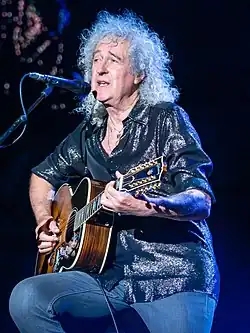 Sir Brian Harold May (born 19 July 1947) is an English musician, animal welfare activist and astrophysicist. He achieved global fame as the lead guitarist and backing vocalist of the rock band Queen, which he co-founded with singer Freddie Mercury and drummer Roger Taylor. His guitar work and songwriting contributions helped Queen become one of the most successful acts in music history.