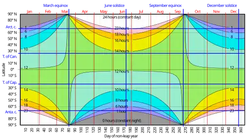 - ^ Here, "day" refers to when the Sun is above the horizon.