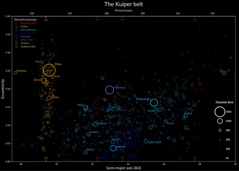 - ^ Morbidelli, Alessandro; Nesvorny, David (2020). "Kuiper belt: formation and evolution". The Trans-Neptunian Solar System. pp. 25–59. arXiv:1904.02980. doi:10.1016/B978-0-12-816490-7.00002-3. ISBN 9780128164907. S2CID 102351398.