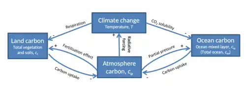 - ^ a b c Lade, Steven J.; Donges, Jonathan F.; Fetzer, Ingo; Anderies, John M.; Beer, Christian; Cornell, Sarah E.; Gasser, Thomas; Norberg, Jon; Richardson, Katherine; Rockström, Johan; Steffen, Will (2018). "Analytically tractable climate–carbon cycle feedbacks under 21st century anthropogenic forcing". Earth System Dynamics. 9 (2): 507–523. Bibcode:2018ESD.....9..507L. doi:10.5194/esd-9-507-2018. hdl:1885/163968.