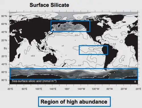 - ^ a b Treguer, P.; Nelson, D. M.; Van Bennekom, A. J.; Demaster, D. J.; Leynaert, A.; Queguiner, B. (1995). "The Silica Balance in the World Ocean: A Reestimate". Science. 268 (5209): 375–9. Bibcode:1995Sci...268..375T. doi:10.1126/science.268.5209.375. PMID 17746543. S2CID 5672525.