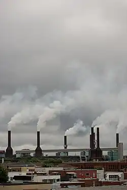 Minority communities often do not have the financial means, resources, and political representation to oppose hazardous waste sites.[15][16] Known as locally unwanted land uses (LULUs), these facilities that benefit the whole community often reduce the quality of life of minority communities.[17] These neighborhoods also may depend on the economic opportunities the site brings and are reluctant to oppose its location at the risk of their health. Additionally, controversial projects are less likely to be sited in non-minority areas that are expected to pursue collective action and succeed in opposing the siting of the projects in their area. In cities in the Global North, suburbanization and gentrification lead to patterns of environmental racism. For example, white flight from industrial zones for safer, cleaner, suburban locales leaves minority communities in the inner cities and in close proximity to polluted industrial zones.[18][19] In these areas, unemployment is high and businesses are less likely to invest in area improvement, creating poor economic conditions for residents and reinforcing a social formation that reproduces racial inequality. Furthermore, the poverty of property owners and residents in a municipality may be taken into consideration by hazardous waste facility developers, since areas with depressed real estate values will save developers' money.