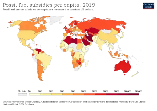 - ^ "Fossil fuel subsidies: If we want to reduce greenhouse gas emissions we should not pay people to burn fossil-fuels". Our World in Data. Retrieved 4 November 2021.