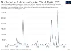 Global number of deaths from earthquake (1960–2017)