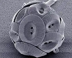 - ^ Langer, Gerald; Geisen, Markus; Baumann, Karl-Heinz; Kläs, Jessica; Riebesell, Ulf; Thoms, Silke; Young, Jeremy R. (September 2006). "Species-specific responses of calcifying algae to changing seawater carbonate chemistry" (PDF). Geochemistry, Geophysics, Geosystems. 7 (9). Bibcode:2006GGG.....7.9006L. doi:10.1029/2005GC001227. S2CID 14774230.