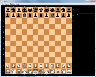 ChessV (short for Chess Variants) is a free computer program designed to play many chess variants. ChessV is an open-source, universal chess variant program with a graphical user-interface, sophisticated AI, support for opening books and other features of traditional chess programs. The developer of this program, Gregory Strong, has been adding more variants with each release of ChessV. Over 100 chess variants are supported, including the developer's few own variants[1] and other exotic variants, and can be programmed to play additional variants. ChessV is designed to be able to play any game that is reasonably similar to chess. ChessV is one of only a few such programs that exist. The source code of this program is freely available for download as well as the executable program.