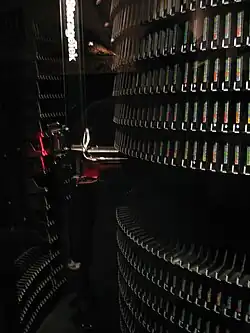 Tertiary storage or tertiary memory typically involves a robotic arm which mounts and dismount removable mass storage media from a catalog database into a storage device according to the system's demands. It is primarily used for archiving rarely accessed information, since it is much slower than secondary storage (e.g. 5–60 seconds vs. 1–10 milliseconds). This is primarily useful for extraordinarily large data stores, accessed without human operators. Typical examples include tape libraries, optical jukeboxes, and massive arrays of idle disks (MAID). Tertiary storage is also known as nearline storage because it is "near to online".[12] Hierarchical storage management is an archiving strategy involving automatically migrating long-unused files from fast hard disk storage to libraries or jukeboxes.