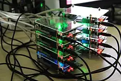 Cubieboard is a single-board computer, made in Zhuhai, Guangdong, China. The first short run of prototype boards were sold internationally in September 2012, and the production version started to be sold in October 2012.[1] It can run Android 4 ICS, Ubuntu 12.04 desktop,[2] Fedora 19 ARM Remix[3] desktop, Armbian, Arch Linux ARM,[4] a Debian-based Cubian distribution,[5] FreeBSD,[6] or OpenBSD.[7]