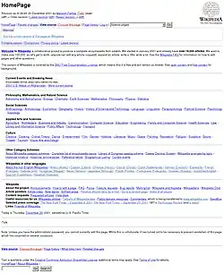 Wikipedia's main page (20 December 2001)