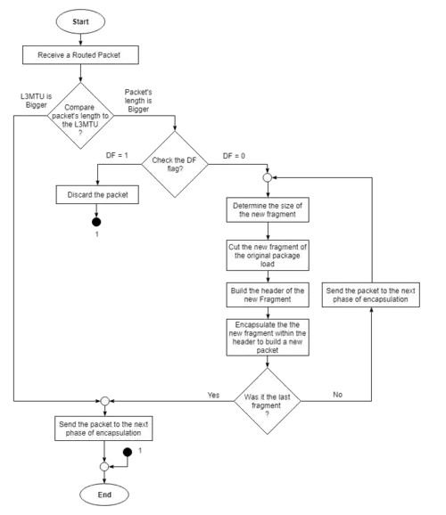 - To set the IP packet size equal or smaller than the directly attached medium and delegate all further fragmentation of packets to routers, meaning that routers decide if the current packet should be re-fragmented or not. This offloads a lot of work on to routers, and can also result in packets being segmented by several IP routers one after another, resulting in very peculiar fragmentation.
