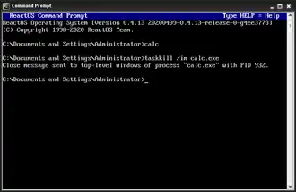 command on ReactOSThe ReactOS implementation is based on the Windows variant. It was developed by Andrew Riedi, Andrew Nguyen, and He Yang. It is licensed under the LGPLv2.1 or later.[8]