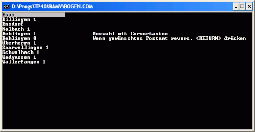 A computer using a command line interface may present a list of relevant commands with assigned short-cuts (digits, numbers or characters) on the screen. Entering the appropriate short-cut selects a menu item. A more sophisticated solution offers navigation using the cursor keys or the mouse (even in two dimensions; then the menu items appear or disappear similarly to the menus common in GUIs). The current selection is highlighted and can be activated by pressing the enter key.