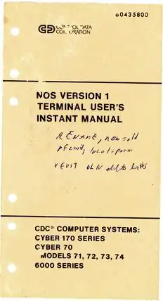From NOS Version 1 Terminal User's Instant Manual, CDC, 1975–1980.