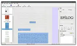 OCRFeeder has a simple graphical user interface that is designed to the GNOME Human Interface Guidelines. It performs a Document Layout Analysis and transfers the layout to capable output formats. It searches for content areas, outlines them and guesses the content type (text or image) and processes text areas through the OCR back-end. It can use virtually any command-line OCR engine as back-end and features auto-detection and auto-configuration for all popular free engines. OCR back-ends may be either auto-configured, the necessary command line entered in a GUI dialogue or configured directly via a XML file. Scan image post-processing including de-skewing can be done.[10] All recognition results can be reviewed and edited before saving to the desired output format. Sessions can be saved and loaded. The suite also includes a spell checker.[11] OCRFeeder has built-in procedures for the post-processing of the raw OCR results returned by the OCR engine. It can remove remaining segmentation to printed lines of text, even with removal of hyphenation.