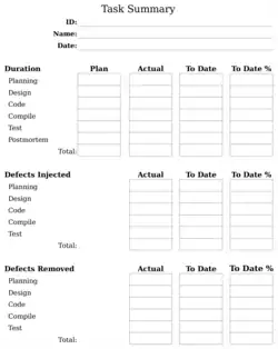 - ^ Pomeroy-Huff, Marsha; Cannon, Robert; Chick, Timothy A.; Mullaney, Julia; Nichols, William (2009). The Personal Software Process (PSP) Body of Knowledge, Version 2.0 (PDF). Pittsburgh, Pennsylvania: Software Engineering Institute, Carnegie Mellon University. Retrieved 17 November 2014. Freely downloadable Special Report CMU/SEI-2009-SR-018, 2009