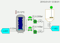 Typical SCADA mimic shown as an animation. For process plants, these are based upon the piping and instrumentation diagram.