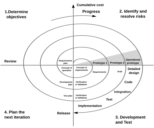 [R]isk-driven subsetting of the spiral model steps allows the model to accommodate any appropriate mixture of a specification-oriented, prototype-oriented, simulation-oriented, automatic transformation-oriented, or other approach to software development.[3]